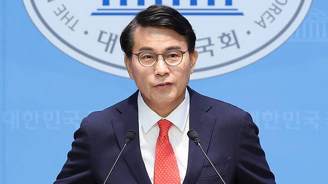 ▲ 국민의힘 윤상현 의원이 24일 서울 여의도 국회 소통관에서 최근 자신이 주최한 토론회 관련 논란에 대해 기자회견을 하고 있다.