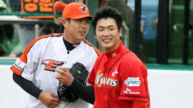 ▲ 2010년 한화 이글스에서 뛰던 류현진(왼쪽)과 SK 와이번스(현 SSG 랜더스)에서 뛰던 김광현