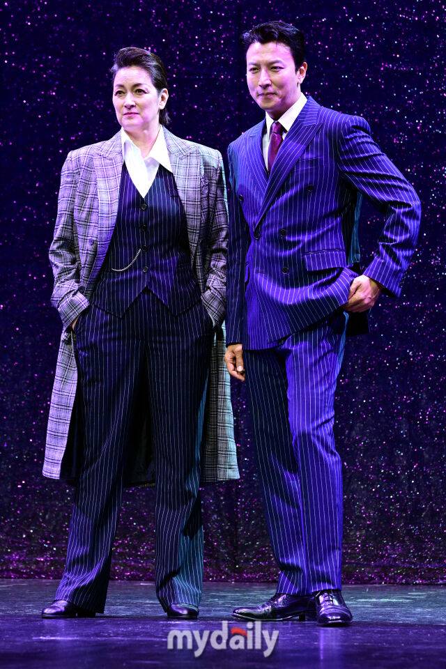 [마이데일리 = 곽경훈 기자] 24일 오후 서울 잠실 샤롯데씨어터에서 진행된 뮤지컬 '브로드웨이42번가' 프레스콜에서 줄리안 마쉬 역의 박칼린(왼쪽)과 박건형이 포즈를 취하고 있다.