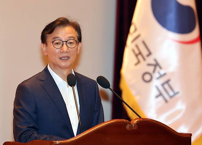 | ▲ 전재수 해양수산부 장관이 24일 정부세종청사 대강당에서 열린 취임식에서 취임사를 하고 있다. 2025.7.24 |