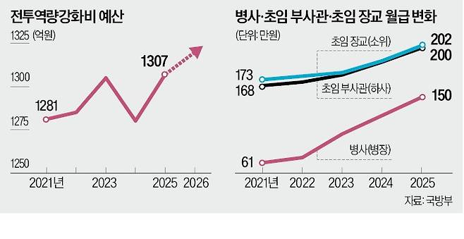 병사 복지를 위해 도입한 전투역량강화비가 일선 간부들의 ‘보너스’처럼 쓰이게 된 배경엔 급여 격차도 영향을 미쳤다는 평가다. 병장 월급은 2021년 61만원에서 2025년 150만원으로 급증하면서 초임 하사(200만원), 소위(202만)와의 격차가 크게 줄었다. 최근 대구에서 육군 중사로 전역한 예비역 C씨는 “병사 월급이 수년간 크게 오르면서 일선 간부들은 전투역량강화비를 사실상 급여처럼 인식하는 분위기가 없지 않다”고 말했다.