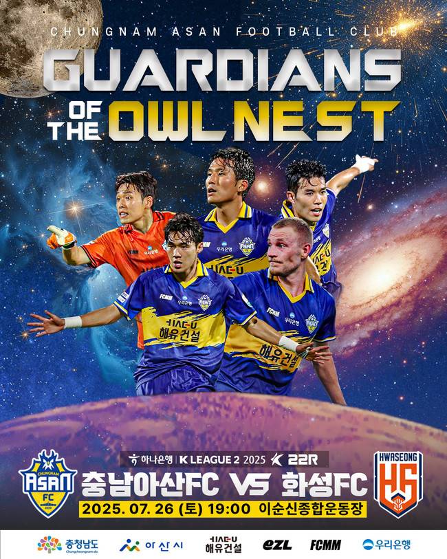 충남아산프로축구단(구단주 오세현, 대표이사 이준일, 이하 충남아산FC)은 오는 26일(토) 오후 7시 이순신종합운동장에서 화성FC(이하 화성)를 상대로 하나은행 K리그2 2025 22라운드 홈경기를 치른다.
