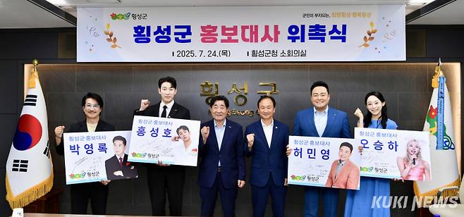 강원 횡성군은 24일 ‘2025 횡성군 홍보대사 위촉식’을 진행했다. 이날 위촉된 홍보대사는 가수 허민영(재위촉), 가수 홍성호, 가수·국악인 오승하, 배우 박영록 등 4명이다. 홍보대사들은 앞으로 2년간 횡성의 관광, 문화, 정책 등에 대한 홍보 활동을 펼친다.