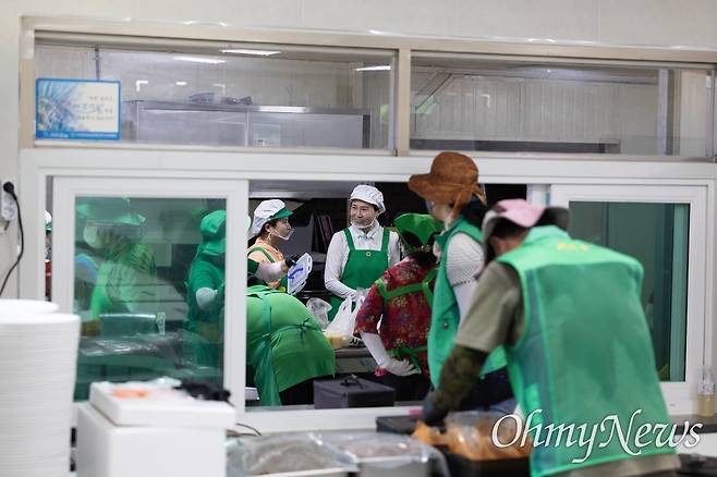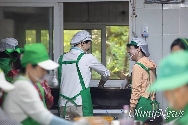 김 여사는 자원봉사자들과 식사를 한 뒤 설거지를 하며 이날 봉사활동을 마쳤다.