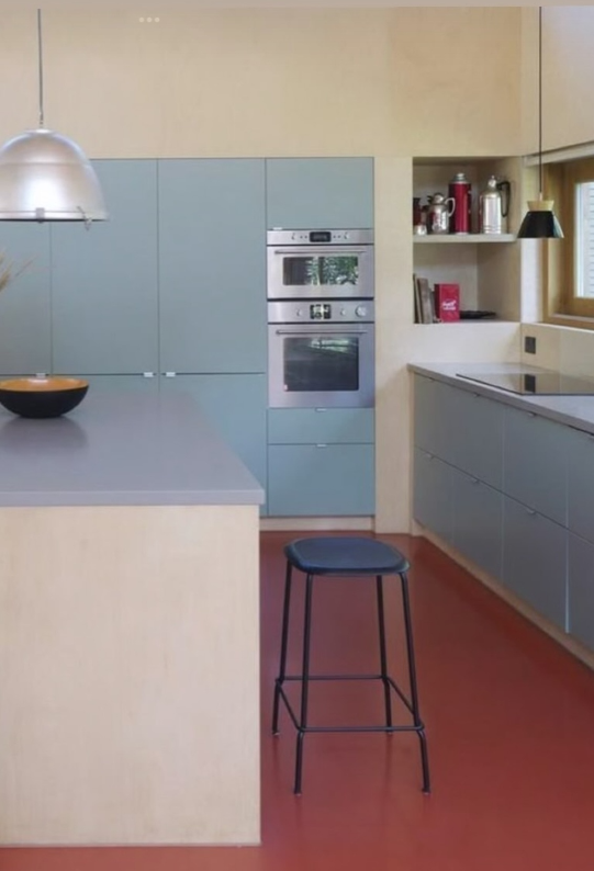 공개된 사진은 고급스러운 분위기의 한 주방을 담고 있다. 붉은 바닥과 민트톤 싱크대, 벽면까지 정제된 톤 앤 매너가 감각적인 무드를 자아낸다.
