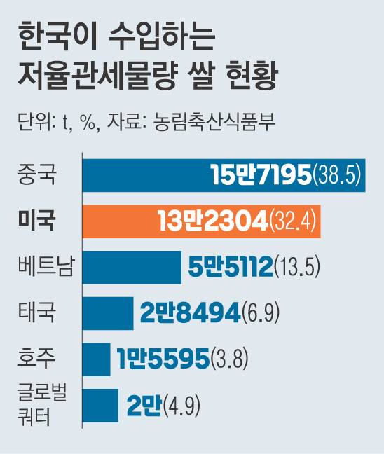 한국도 TRQ 물량으로 매년 40만8700t을 수입하고 있다. TRQ가 적용되는 쌀 관세는 기존 513%에서 5%로 낮아진다. 미국도 바로 이 TRQ 물량을 늘리라고 요구하고 있는 것으로 전해진다.