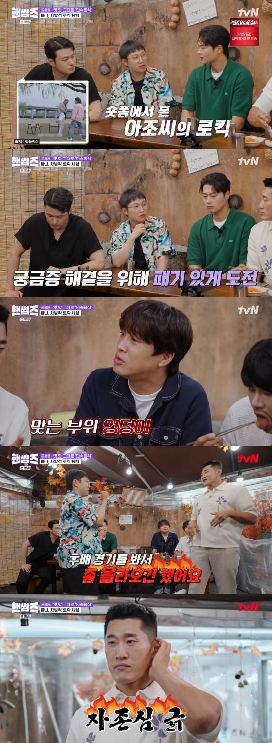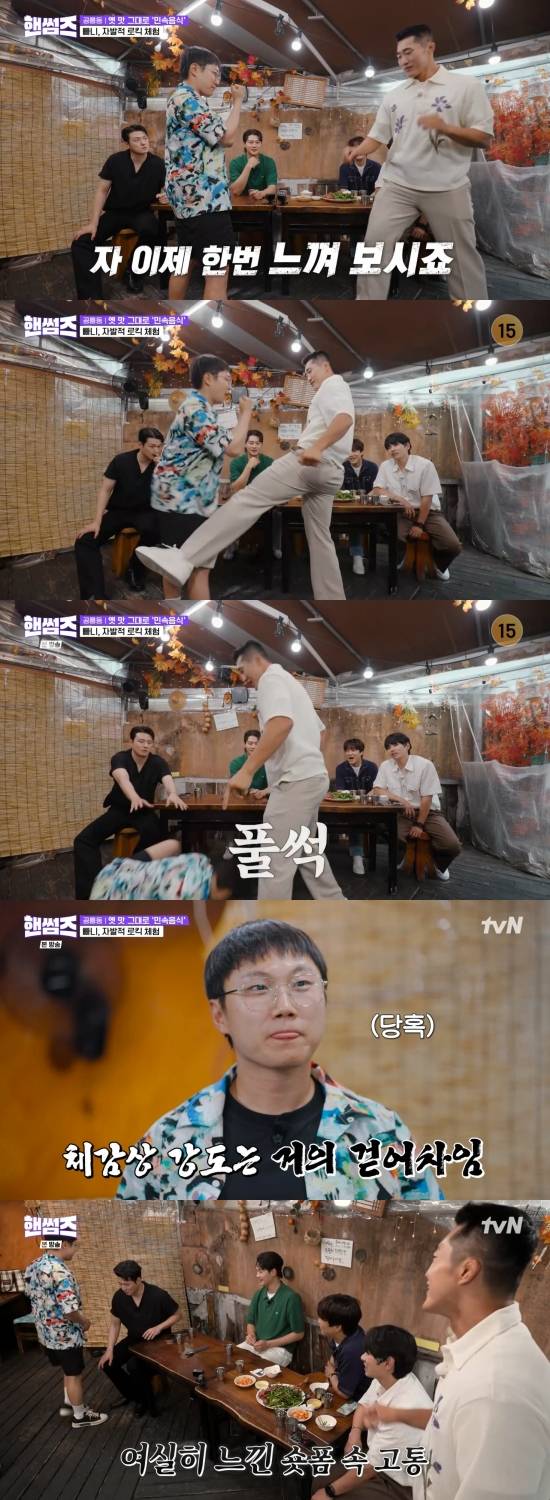빠니보틀, 김동현에 로킥 체험…한 대 맞고 쓰러져 "억울" (핸썸즈) [종합]