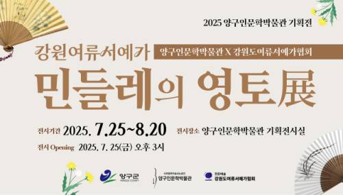 개막식은 25일 오후 3시 양구인문학박물관 기획전시실에서 열리며 개막식에는 서흥원 양구군수, 박경자 강원서학회 회장, 이상돈 강원여류서예가협회 협회장 등 50여명이 참석한다.