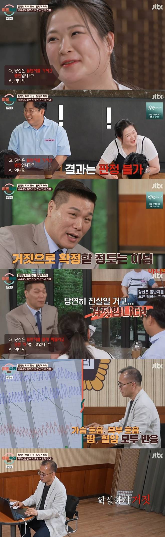 남편은 "판정불가 때 좀 아리송했다"고 밝혔고, 아내는 "전 돌반지가 아니라 범인이라고 지목당한 게 짜증나서 욱했다. 진짜 왜 판정불가인가. 진실로 나와야 큰소리 치고 남편 결과를 기대할 텐데 찝찝했다"고 억울함을 표했다.