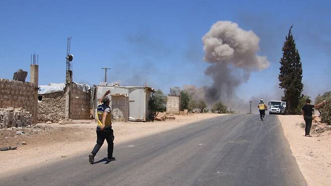 시리아 민간 구호단체 '하얀헬멧' 등이 공개한 현장 사진을 보면 폭발 당시 회색 연기가 하늘 높이 치솟고 건물 여러 채가 무너졌으며 트럭이 뒤집히는 등 피해가 상당한 것으로 보입니다.