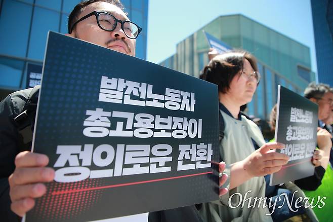 | ▲ 전국공공운수노조 발전HPS지부, 기후위기비상행동 등 40여 개 단체가 2024년 5월 16일 원청인 한국남부발전을 찾아 정의로운 전환을 촉구하는 공동 투쟁에 나선 모습. |