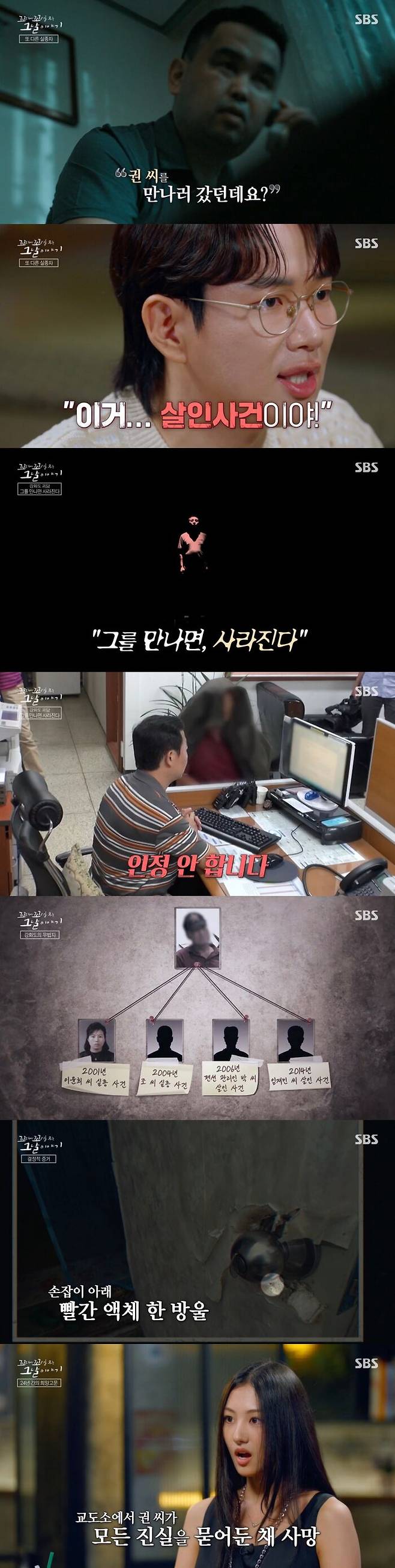 그럼에도 권 씨는 끝까지 반성은커녕 이해할 수 없는 행동을 해 보는 이들의 분노를 자아냈다. 결정적 증거가 나온 임 씨의 사건에도 무혐의를 주장한 권 씨. 그는 이 씨와 조 씨 실종 사건에 대해서도 끝까지 무혐의를 주장했다.