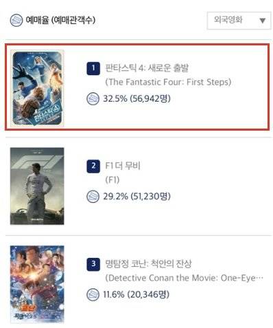 ‘판타스틱4’ 개봉 첫날 외화 박스오피스 1위