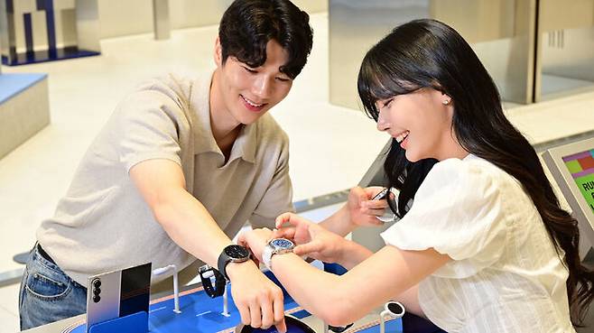 ▲ 삼성스토어 홍대 '갤럭시 스튜디오'에서 '갤럭시 워치8'과 '갤럭시 워치8 클래식'을 체험하는 모습