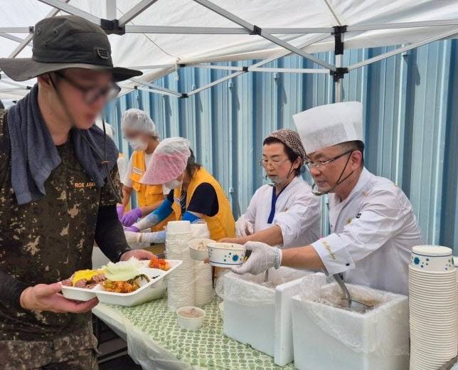 지친 군 장병과 봉사자들은 땀에 젖은 옷 그대로 식판을 들고 긴 줄에 섰고 뜨끈한 한 끼에 잠시나마 몸과 마음을 달랬다. 안 셰프를 알아본 주민들은 "정말 고맙다"며 거듭 인사를 전했다.