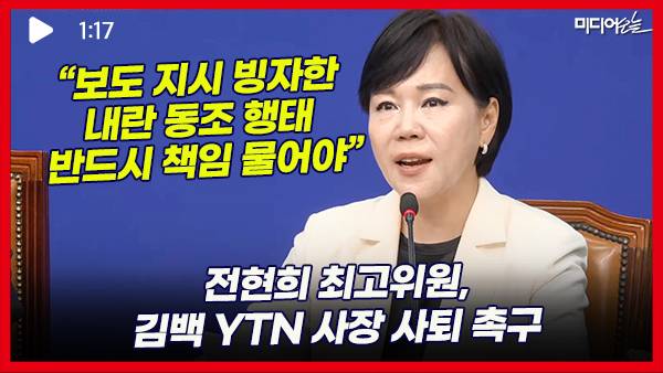 전 최고위원은 “당시 YTN에서는 서울을 제외한 지역별 탄핵 찬반 집회를 기사화한 적이 없었고, 부산 취재본부는 에어부산 화재 사고 보도에 주력하는 상황이었다고 한다”며 “그런 상황에서 김백 사장의 보도 지시는 명백한 보도 자율성 침해이자 내란 선전 선동 가담 행위”라고 직격했다. 전현희 최고위원은 “김백 사장은 부당한 보도 개입 행위에 대해 낱낱이 밝히고 YTN 구성원과 국민에 대한 공식 사과와 함께 즉각 물러나시라”며 “YTN의 방송 독립성을 무너뜨리고 보도 지시를 빙자한 내란 동조 행태에 대해서는 반드시 그 책임을 물어야 할 것”이라고 밝혔다.