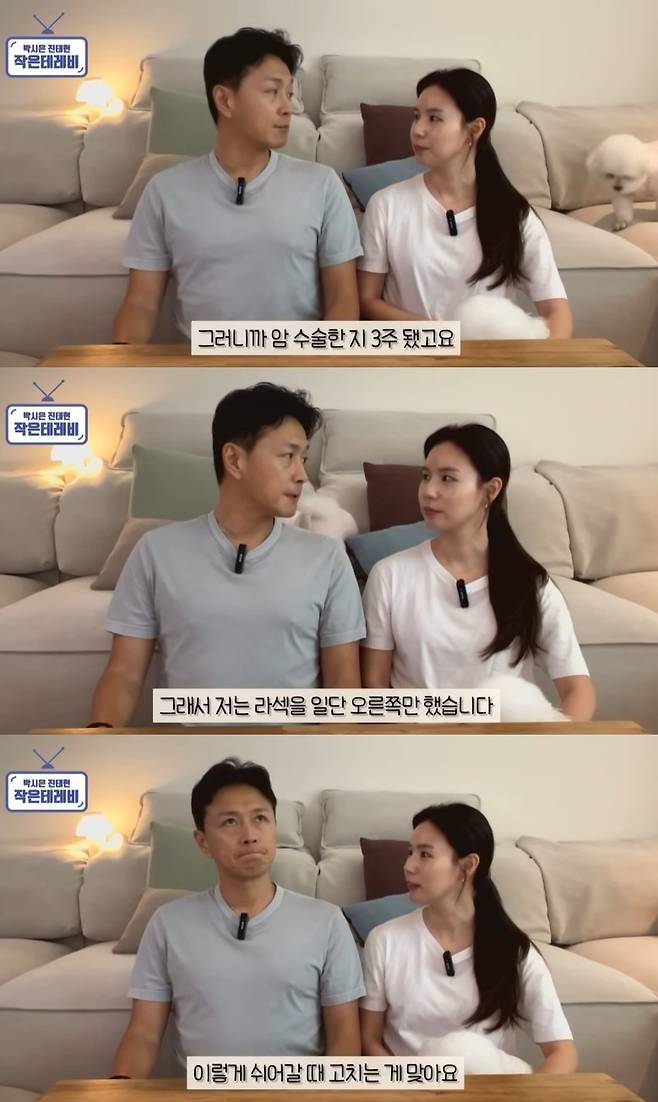 그는 "암 수술한 지 3주 됐고, 라섹 수술한 지 일주일 정도 되어간다"며 "그래서 라섹을 일단 오른쪽만 했고, 왼쪽 눈에는 렌즈 삽입술을 한다. 이런 걸 하이브리드라고 한다"고 설명했다.