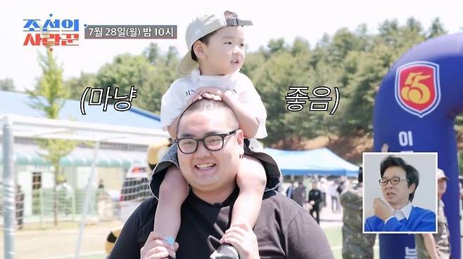 아무것도 모른 채 아빠의 어깨 위에서 해맑게 웃던 이훈은 훈련소 안으로 들어섰고, 선배 장병들의 환호 속에 분위기는 한층 무르익었다.