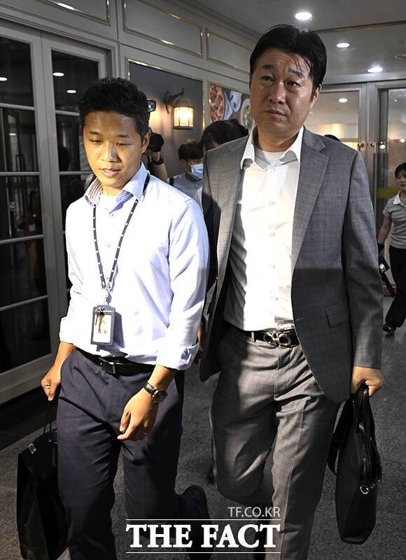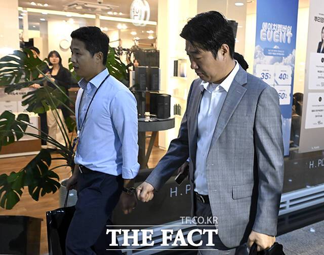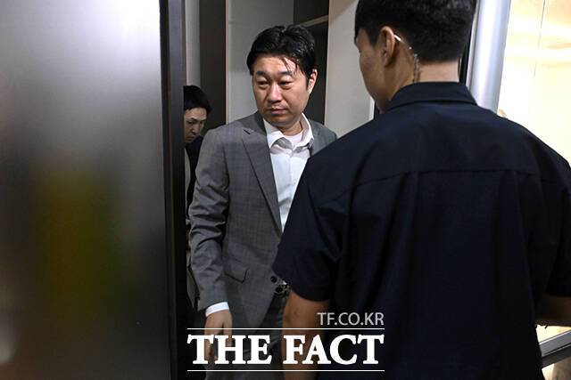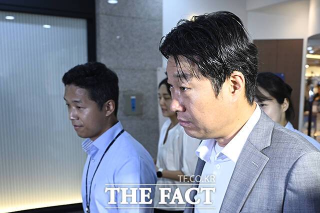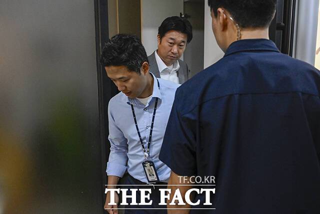 [더팩트ㅣ장윤석 기자] 김건희 여사의 의혹들을 수사하는 민중기 특별검사팀 관계자들이 25일 오후 서울 서초구 아크로비스타 내 코바나컨텐츠 사무실 압수수색을 마친 뒤 철수하고 있다.