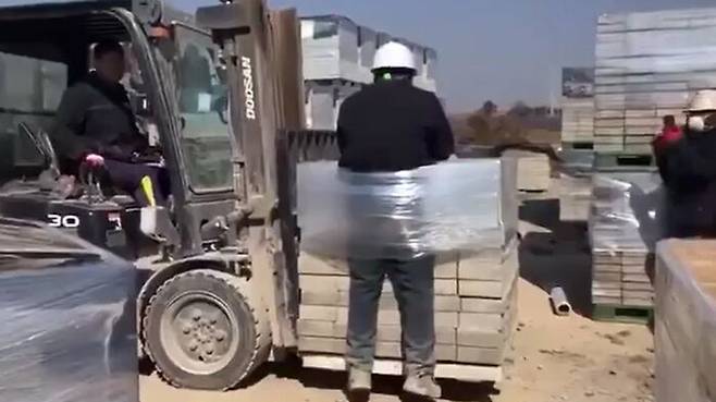 ▲ 전남 나주의 한 벽돌 생산 공장에서 스리랑카 국적의 이주노동자를 화물에 결박하고 지게차로 들어 올리는 인권유린 사건이 발생했다.