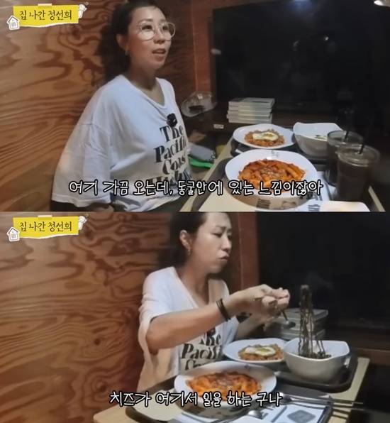 음식이 나온 뒤, 책과 자리로 돌아온 정선희는 이 장소에 대해 "가끔 오는데 동굴 안에 있는 느낌이지 않나. 옛날 생각이 나는데 옛날 만화방보다 훨씬 쾌적하다"고 만족스러워했다.