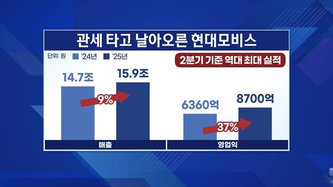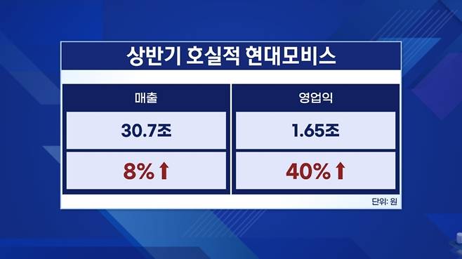<기자> 현대모비스는 오늘 2분기 매출액 약 15조 9,400억 원, 영업이익 약 8,700억 원을 기록했다고 공시했습니다.