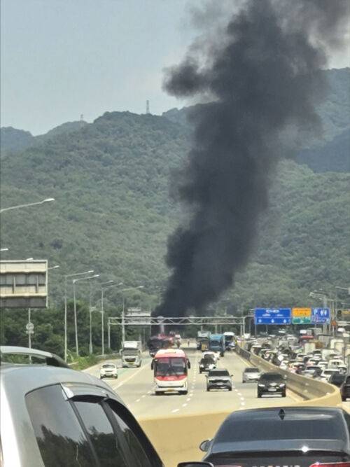 수도권 제1순환선 청계TG 부근서 차량 화재…"2㎞ 정체"