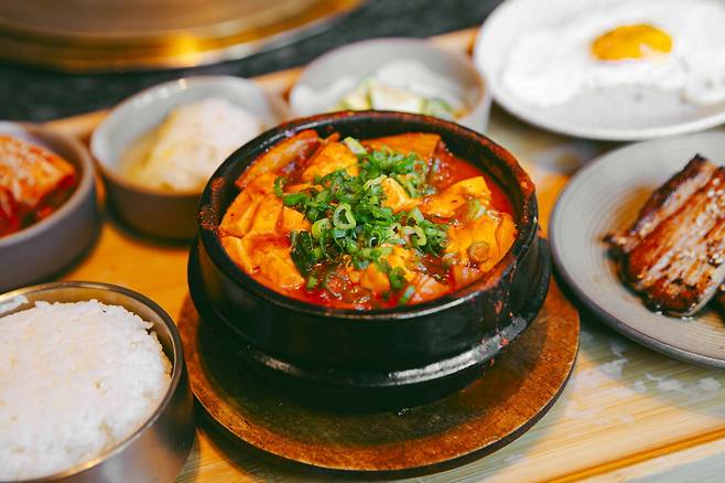 점심에는 메인 구이(소고기·닭고기·고등어·채소 중 택1)를 곁들인 코리안 런치 트레이(백반), 찌개(순두부·김치·설렁탕)를 추천하고, 코리안 베이컨(된장 소스를 바른 삼겹살 구이)을 곁들이면 제대로 된 한식을 경험할 수 있다.
