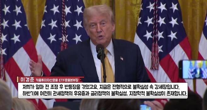 저희가 얼마 전 조정 후 반등장을 겪었고요. 지금은 전형적으로 불확실성 속 강세장입니다. 하반기에 여전히 관세정책의 후유증과 금리정책의 불확실성, 지정학적 불확실성이 존재합니다. 그럼에도 미국 경제의 펀더멘털은 여전히 강력합니다.