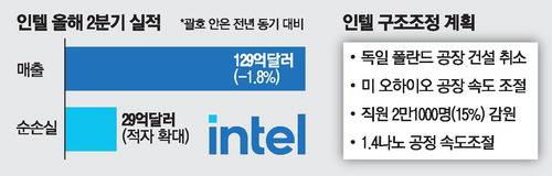 인텔은 이날 대규모 구조조정 계획도 발표했다. 연말까지 인력을 2만1000명 이상 추가 감축하고, 독일과 폴란드에서 진행 중인 파운드리 공장 건설을 중단하기로 했다.
