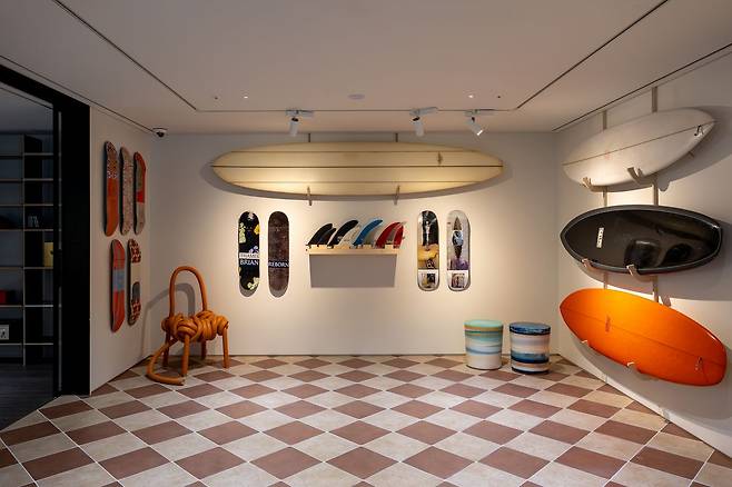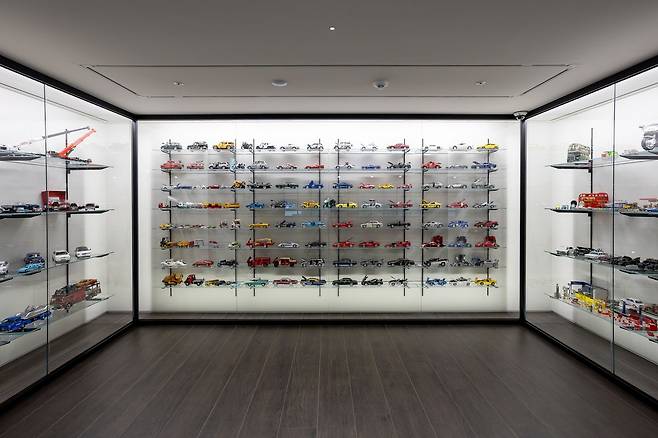 DUPLEX HOUSE 는 180도 다른 분위기가 선보입니다. 백남준, 사라 모리스, 유르겐 텔러가 그려낸 생생한 색감의 공간을 지나 반 층 위를 오르면 COLLECTOR’S SPOT 이 기다리고 있어요. 카우스와 무라카미 다카시, 빈티지 미니카, 넥타이, 레트로 서핑보드까지, 누군가의 '진짜' 취향을 엿보는 순간이죠. 미니카 컬렉터가 이번 전시만을 위해 모든 차 문을 일일이 열어두었다는 후문도 슬쩍 흘려봅니다.