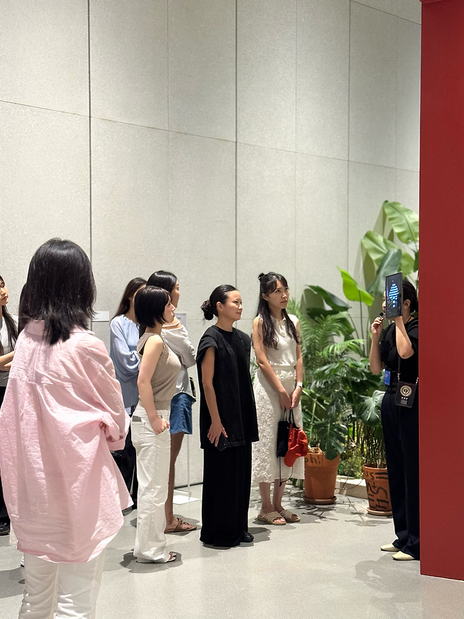 저녁 7시 가량 성수동 디뮤지엄에 모인 참여자들은 전문 도슨트와 함께 전시의 주요 공간을 천천히 걸으며 작품의 이야기를 들었습니다. 낮보다 한결 고요해진 전시장은 작품 앞에 오래 머물기에 더없이 좋은 시간이었고, 〈취향가옥 2〉의 디테일을 한층 꼼꼼하게 느끼게 해줬어요.
