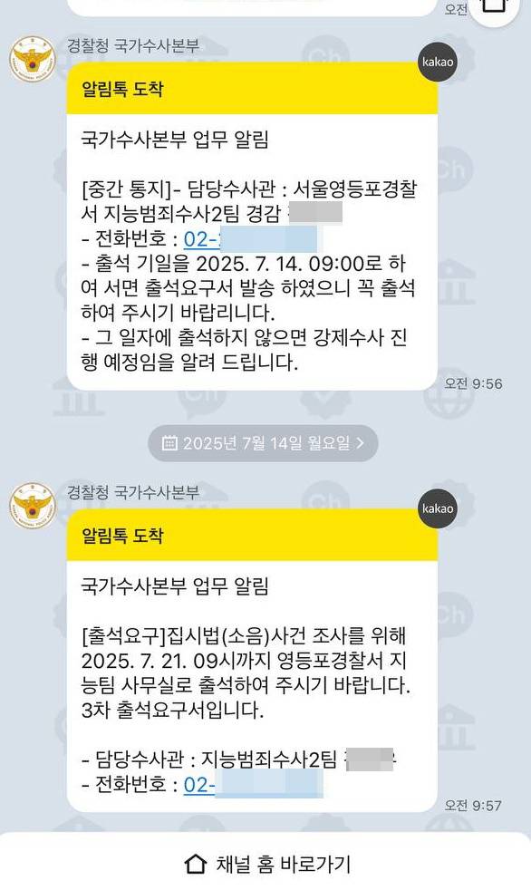 | ▲ 국가수사본부에서 온 카카오톡 메시지 |