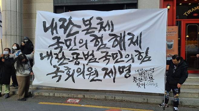 | ▲ 국민의힘 해체를 요구하는 현수막 |