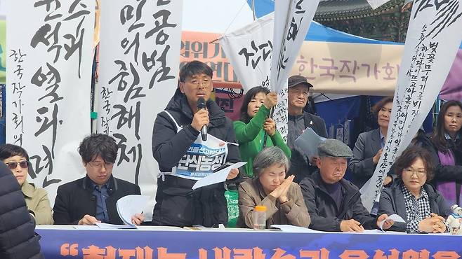 참, 경찰들이 집으로 잡으러 왔던 어제는 용산 대통령실 앞에서 기자회견이 있었다. 송미령(농림축산식품부장관)을 그대로 보고 있어야 하는 농민들 마음과 비슷한 마음이었다. 지난 이명박 정권 시기 '문화예술계 블랙리스트' 연루 의혹이 있는 유인촌이 내란까지 겪으면서도 아직도 문체부 장관인 것도 견딜 수 없는 일인데, 갑자기 놀유니버스(구 야놀자 합병) 사장인 최휘영씨를 문체부 장관으로 임명하겠다고 했다.