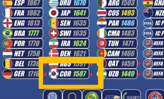 물론 아직 조별리그 추첨까지 시간이 남아 있고, 한국 바로 뒤에서 FIFA 랭킹 24위 호주가 맹추격 중이라 안심할 순 없다. 한국(1587.08)과 호주(1578.57) 간의 랭킹 포인트 차이는 불과 8.51점이다.
