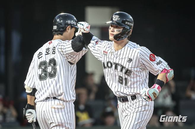 롯데는 바로 반격했다. 간판타자 윤동희가 1사 뒤 전준우가 볼넷으로 출루한 상황에서 두 번째 타석에 나서 김건국의 컷 패스트볼을 공략해 좌측 담장을 넘기는 역전 투런홈런을 쳤다.