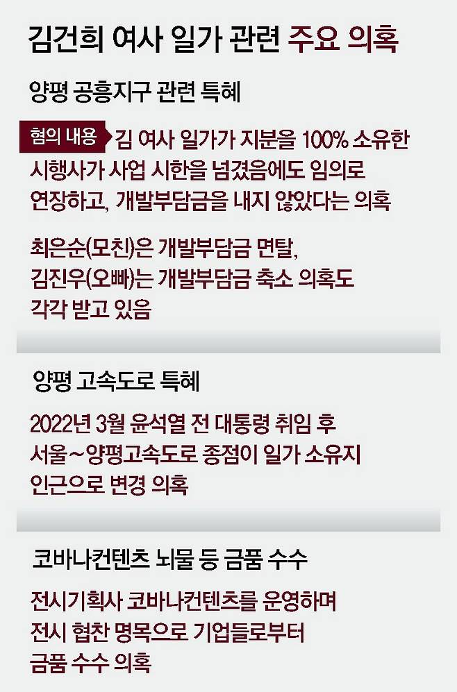 [3대 특검 수사] 김건희 일가 동시다발 압수수색 金 20년 된 수첩-전화번호부도 확보… ‘명품 가방 신발로 교환’ 유경옥 조사 나토 순방 당시 목걸이 인척집서 확보… 金측 “특검이 압수한 건 모조품” ‘양평 공흥지구 개발 특혜 의혹’ 관련… 당시 군수 野 김선교 의원 압수수색