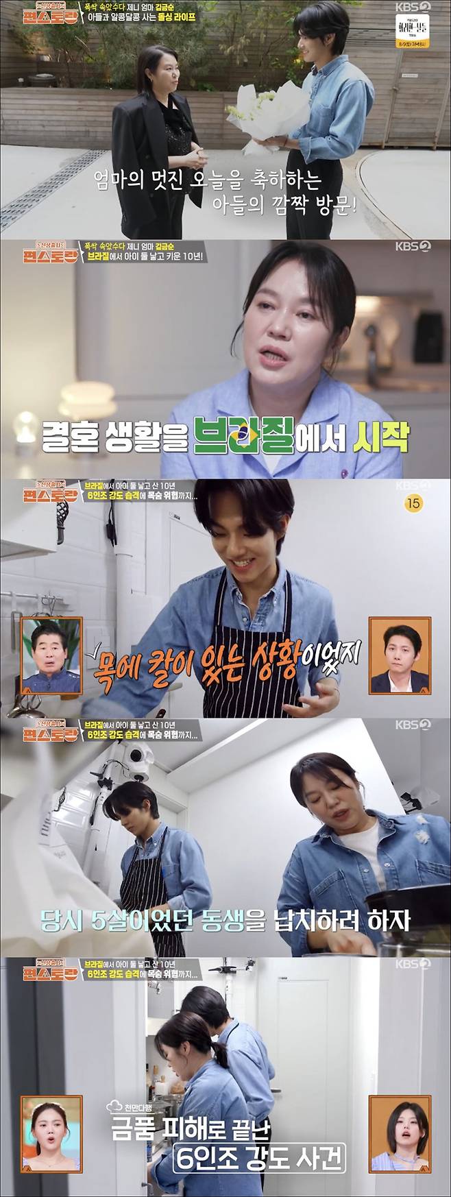 김금순은 파란만장했던 인생사를 고백하기도 했다. 김금순은 브라질에서 만난 전남편과 결혼 후 10년간 브라질에서 살았다고. 두 아이들도 브라질에서 낳아 키웠다고 밝혀 놀라움을 자아냈다. 하지만 김금순의 가족은 강도 사건을 당한 후 한국으로 귀국했다. 김금순은 "강도 6명이 들어와서 밖에서 한 명이 지키고 있고 집 안에 5명이 들어왔다. 엘리베이터에서 내리자마자 목을 뒤에서 낚아챘다. 그때 동생을 데려가려 하니까 데려가지 말라고 소리를 질렀더니 강도가 조용히 시키라 했다"고 충격적인 일화를 밝혔다.