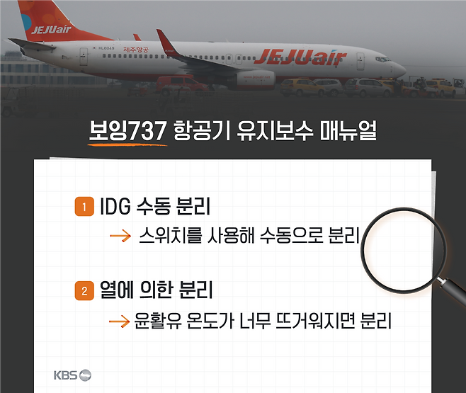 사고 기체의 IDG 상태를 분해해 검사해봤더니, 오른쪽 IDG가 엔진으로부터 분리돼 있었다는 게 사조위 설명입니다.