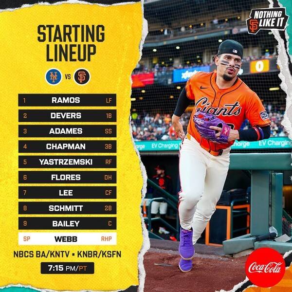 샌프란시스코는 엘리엇 라모스(좌익수)-라파엘 데버스(1루수)-윌리 아다메스(유격수)-맷 채프먼(3루수)-마이크 야스트렘스키(우익수)-윌머 플로레스(지명타자)-이정후(중견수)-케이시 슈미트(2루수)-패트릭 베일리(포수) 순으로 라인업을 구성했다. 선발 투수는 로건 웹이다.