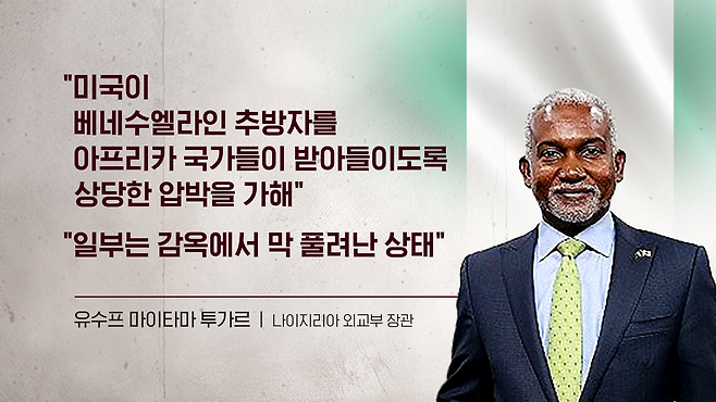 나이지리아 장관은 현지 방송 인터뷰에서 미국이 베네수엘라인 추방자를 아프리카 국가들이 받아들이도록 상당한 압박을 가하고 있다, 일부는 감옥에서 막 풀려난 상태다, 나이지리아는 이들을 수용할 수 없다, 이렇게 말했습니다. 이 장관은 또 미국이 베네수엘라 추방자들을 받아들이도록 나이지리아에 압력을 가하고 또 끈질기게 요구하는 것은 불공평하다라고 비판했습니다. 실제로 트럼프 대통령은 나이지리아 수출품에 10%의 관세를 부과했고 또 입국 비자도 3개월 단수 비자로 제한을 했는데요. 이 장관은 현지 매체와의 인터뷰에서 트럼프 행정부의 조치가 추방자 수용 거부에 대한 '보복'이다, 이런 해석을 내놨습니다.