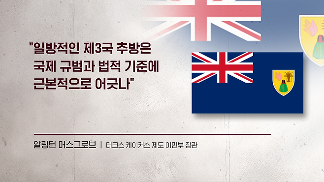 카리브해의 터크스 케이커스 제도도 미국의 요청을 거절했습니다. 이곳의 이민부 장관은요. 한 인터뷰에서 명확하게 국제 규범 위반이다라고 지적을 했습니다. 그러면서 자신들은 자국 국경 안에 누가 거주할지를 결정할 주권을 가진 나라다. 그리고 미국이 검토 중인 것으로 알려진 일방적인 제3국 추방은 국제 규범과 법적 기준에 근본적으로 어긋난다, 이렇게 이야기를 했습니다.