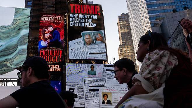 ▲ 뉴욕 맨해튼 타임스스퀘어에 등장한 엡스타인 파일 공개요구