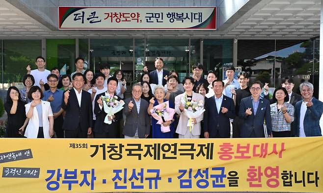 거창군은 최고의 배우들이 거창국제연극제를 홍보해 위상과 관심을 높였다. 25일 거창군청에서 강부자, 진선규, 김성균 배우를 초청해 ‘제35회 거창국제연극제 홍보대사 위촉식’을 가졌다.