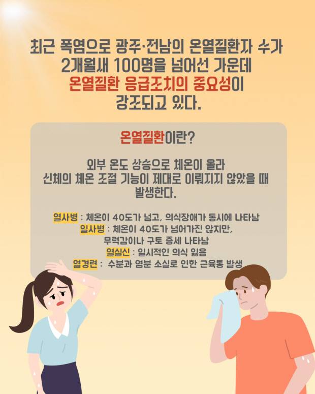 최근 폭염으로 광주·전남의 온열질환자 수가 급증하면서 온열질환 응급조치의 중요성이 강조되고 있다.