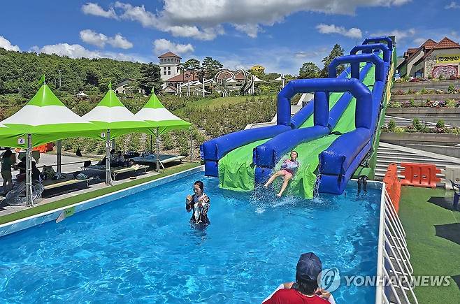 (임실=연합뉴스) 26일 전북 임실군 성수면 임실치즈테마파크에서 개막한 '2025 임실 아쿠아페스티벌'에서 피서객들이 물놀이를 즐기고 있다. 이번 페스티벌은 다음 달 10일까지 열린다. 2025.7.26 [임실군 제공. 재판매 및 DB 금지]