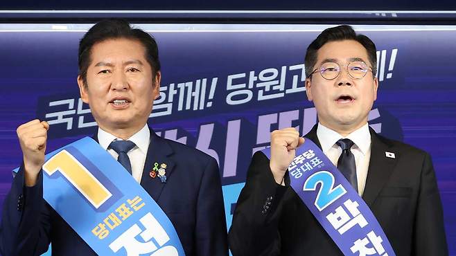 정청래 당대표 후보도 자신의 SNS를 통해 "협치보다 내란척결이 먼저"라며 "총을 든 계엄군을 국회로 보냈던 내란세력과 협치가 가능하느냐, 진정한 사과가 먼저다"라고 말하는 등 국민의힘과 윤 전 대통령 부부를 겨냥한 두 후보간 선명성 경쟁이 연일 이어지고 있습니다.