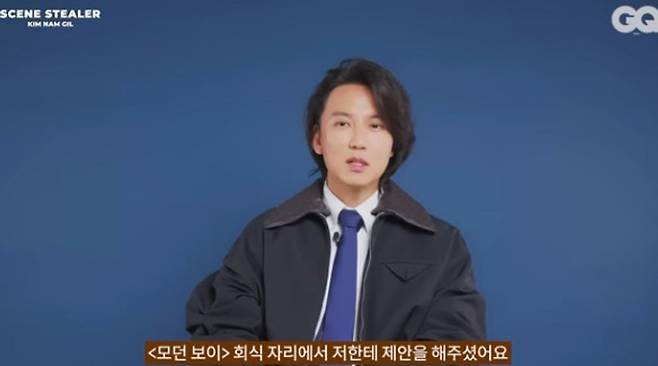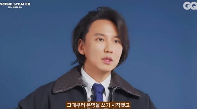 영상에선 김남길이 질문에 답하는 모습이 담겼다. 신인시절에 대해 김남길은 “‘모던보이’ 영화 찍을 때 강우석 감독님을 처음 만났었고 회식 자리에서 제안을 해주셨다. 그때 당시에 제 이름(예명) 이야기를 하시는 거다. 예명이 배우 같지 않다고 하시더라. ‘네가 갖고 있는 외형적인 에너지와 어울리지 않고 네가 활동하고 있는 예명으로 불러도 잘 못 알아들으면서 그 예명을 뭐 하러 쓰냐’고 하셨다”라고 예명에서 본명을 쓰게 된 사연을 공개했다.