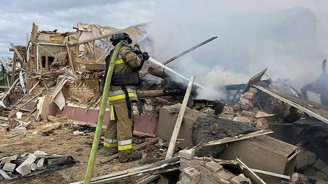 ▲ 우크라이나 도네츠크주에서 소방관들이 러시아의 공격으로 발생한 화재를 진압하고 있다.